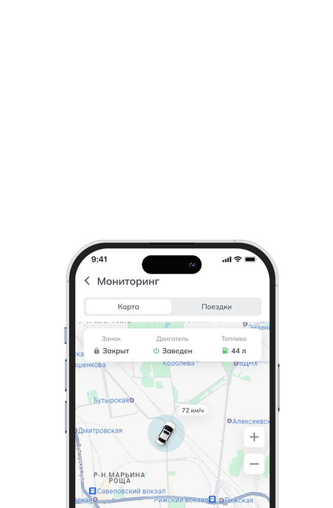 Позволяет отслеживать местоположение автомобиля на карте и сохранять историю поездок для анализа и контроля перемещений.