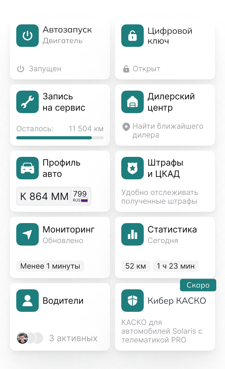 «Цифровой автомобиль - комплексная экосистема бренда Solaris обеспечивает максимальный комфорт благодаря интуитивно понятному управлению через мобильное приложение. Функции телематики позволяют в реальном времени следить за состоянием машины, а автозапуск и дистанционное управление делают каждую поездку комфортной с первых минут. Всё — от обслуживания автомобиля до подключения полезных внешних сервисов — доступно в несколько касаний, что превращает владение автомобилем в лёгкий и приятный процесс»